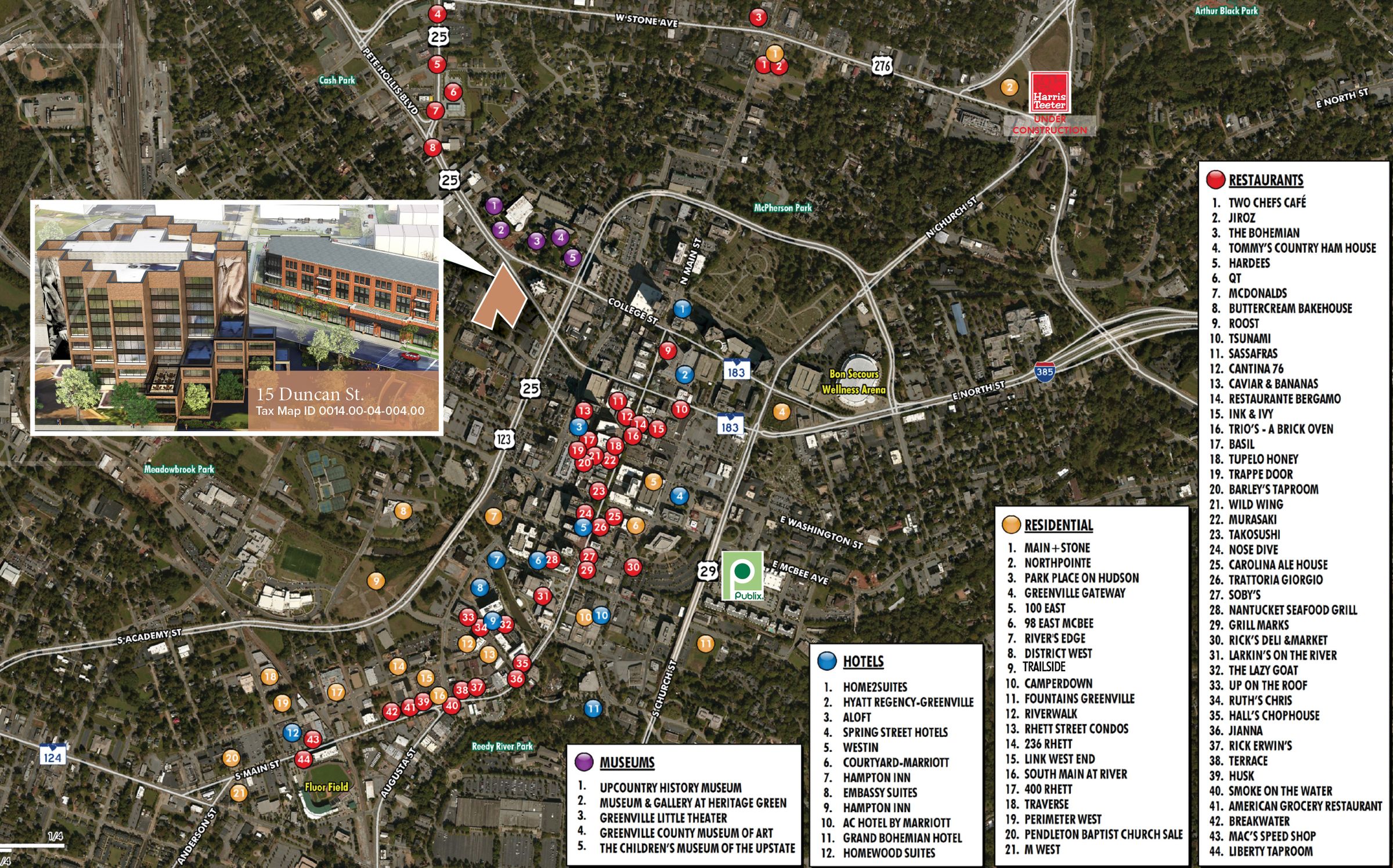 Located just two blocks from Greenville’s North Main Street and along two of the city’s most important thoroughfares, the 21,805 sq. ft of ground-floor commercial space is well-positioned to serve the residents of Canvas Lofts, the North Main Street business district, and the surrounding Hampton Pinckney neighborhood.